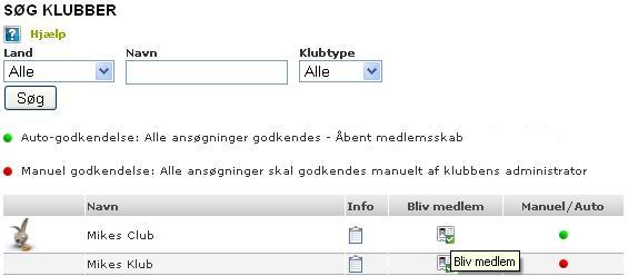 3. Ud for den ønskede klub klikkes på ikonet i kolonnen ”Bliv medlem”.